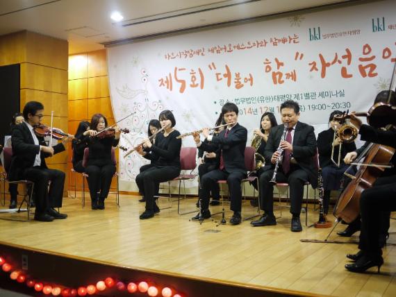 지난 11일 저녁에 열린 '자선음악회'에서는 세계 유일 시각장애인 오케스트라인 '하트체임버 오케스트라'를 초청해 합창 공연 4곡을 선보였다. 태평양과 동천 구성원 다수는 이번 음악회에 참석해 송년회를 대신했다.