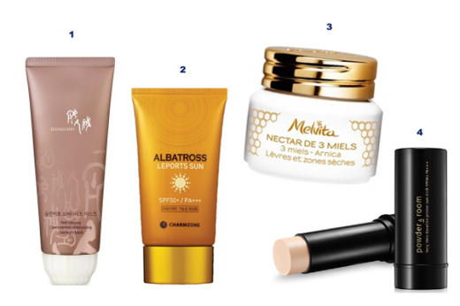 | 1. 동인비 ‘동인비초 오버나이트 마스크’ 2. 참존 ‘알바트로스 레포츠 선’ 3. 멜비타 ‘허니 넥타 밤’ 4. 쏘내추럴 ‘롱 타임 듀레이션 프라이머 선 스틱' / 스타일뉴스 |