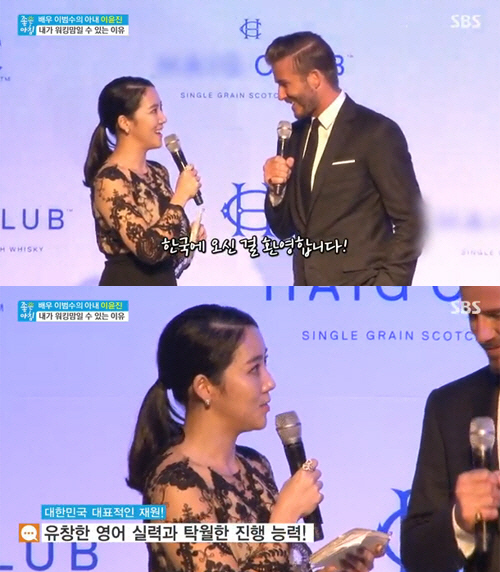 이윤진이 베컴의 통역을 맡아 유창한 영어실력을 선보였다.