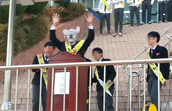 이 관계자는 "지난달 28일 학생회장 선거 당일 조회대 앞에서 해당 학생이 그런 복장을 하고 선거 유세를 한 것으로 파악된다. 현재 이 사안을 놓고 논의 중이기 때문에 학생에 대한 징계 여부는 아직 알 수 없다"며 "사람들은 교사들이 왜 그런 행동을 그대로 놔뒀냐고 비판하던데, 저도 사진을 보고 그 캐릭터가 무슨 뜻인지 몰랐다. 선생님들도 모르고 가만히 있었던 것 같다"고 해명했다.