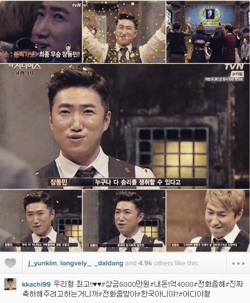 이어 장동민은 "'제 인생에서 이렇게 나에게 힘을 북돋아 주는 사람이 있구나'라는 생각에 우승보다 훨씬 더 값진 선물을 받은 것 같다. 그렇게 살아야겠다. 그것만이 장동민이 살 길이구나 느꼈다"고 덧붙였다.