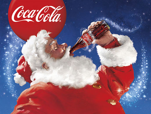 산타클로스의 상징인 붉은색 옷과 풍성한 수염은 코카콜라의 광고에서 처음 도입돼 전세계적으로 퍼져 나갔습니다. 1931년 미국 화가 해던 선드볼룸이 코카콜라의 로고 색깔인 빨간색의 옷과 하얀 거품을 연상시키는 풍성한 수염을 그린 것이 지금의 산타클로스의 표준 모델이 됐습니다. 콜라를 마시며 어린이들을 향해 인사하는 산타클로스는 선더볼룸이 상상해서 그린 것입니다.