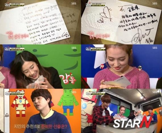 규현은 한빙과 왕스치를 위해 애정이 듬뿍 담긴 손편지를 건넸기 때문. 이에 두 사람은 규현의 정성에 감동해 눈물을 흘렸다.