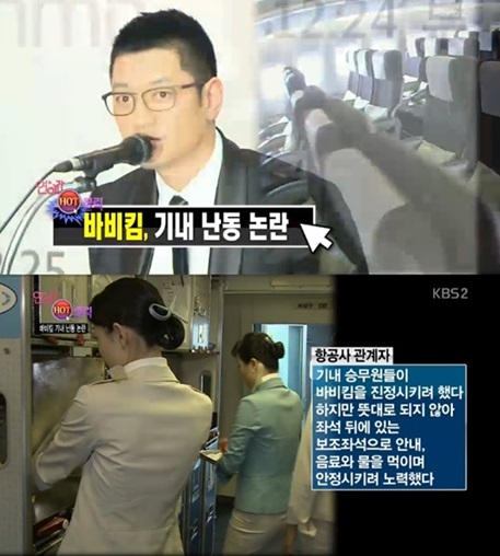 지난 10일 오후 방송된 KBS 2TV '연예가중계'에서는 최근 미국 샌프란시스코행 비행기 안에서 술을 마시고 난동을 부린 가수 바비킴의 소식을 전했다.