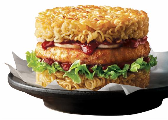 발매 3일만에 18만개가 판매된 화제의 버거, 롯데리아의 '라면버거'는 햄버거의 상식을 파괴한 특이한 제품이었다.