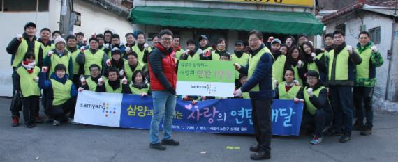 삼양그룹(대표 김윤 회장)은 지난 17일 서울 상계동에서 '사랑의 연탄배달' 봉사활동을 펼쳤다고 18일 밝혔다. 그룹 임직원과 가족 60여 명이 참가해 기초생활수급자 및 독거노인 등 어려운 이웃을 찾아 따뜻한 겨울을 보낼 수 있도록 연탄 1만장을 전달했다.