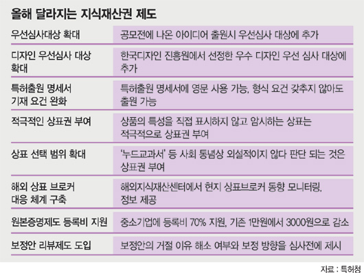 이 같은 점을 고려해 정부는 올해 지식재산권 관련 제도를 대거 정비할 예정이다. 특히 1인 발명가들의 초기 아이디어를 적극 보호하고 글로벌 추세에 맞춰 해외출원을 지원하는 등 눈에 띄는 변화가 많다.