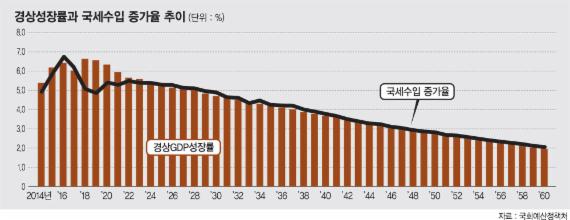 예산정책처는 5.6%의 경상성장률(성장률+물가상승률)을 전제로 올해 국세수입이 218조2000억원에 이를 것이라고 추정했다. 올해 예산상 국세수입 221조1000억원과 비교하면 3조원가량 세금이 모자랄 수 있다는 것이다. 4년째 세수결손이다.