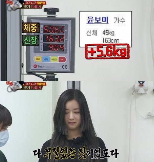 그러나 윤보미는 이날 신체검사에서 프로필 몸무게보다 5kg이 더나가는 50kg인 것이 밝혀져 폭소케 했다.