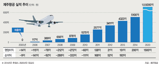 제주항공이 2020년 매출액 1조5000억원을 기록하면 LCC를 뛰어넘어 대한항공, 아시아나항공에 이어 확고한 '넘버 3' 항공사의 자리를 차지하게 된다. 대한항공은 현재 12조, 아시아나항공은 5조원대의 매출액을 기록하고 있다.