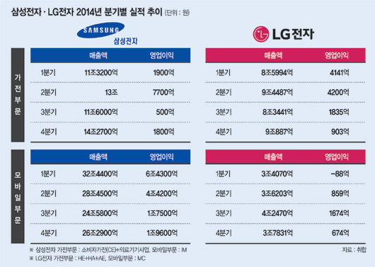 ■가전사업 부문, 양사 모두 매출 선방·영업이익 축소