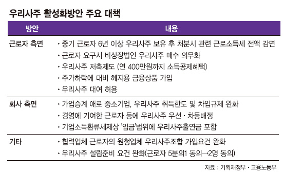 정부가 2일 발표한 우리사주제도 활성화 방안은 중소기업의 우리사주제도 활성화에 방점을 찍고 있다.