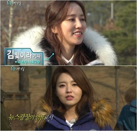 김빛이라 기자는 1986년생으로 KBS 사회부 소속 4년차 기자다. 남다른 외모에 예능감까지 선보였다. 복불복 게임에서 매운 오뎅을 먹고 버티고, 멤버들과 거침없는 입담으로 좌중을 폭소케 했다.
