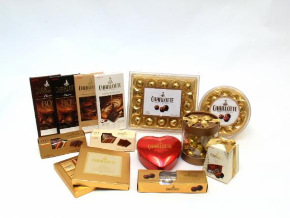 '샤롯데'는 형태에 따라 볼 초콜릿 6종, 미니 초콜릿 3종, 판 초콜릿 4종, 총 13종의 다양한 제품으로 구성됐다. '샤롯데 볼'은 동그란 구슬 모양의 초콜릿으로, 6가지의 다양한 포장 형태로 제작됐다. '샤롯데 볼'은 초콜릿 속에 헤즐넛 크림이 들어있어, 넛츠향의 풍미와 부드러운 식감을 맛볼 수 있다. '샤롯데 미니'는 먹기 좋은 한입 크기의 쉘 타이프 초콜릿으로, 카카오함량에 따라 40%, 55%, 70% 세 종류가 있다.