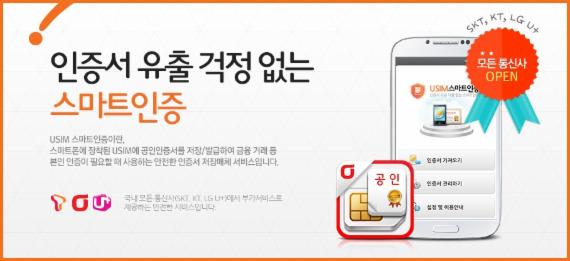 'USIM 스마트인증'은 스마트폰에 장착된 유심(USIM)칩에 인증서를 저장해 금융거래 등 본인인증 필요 시 사용하는 신개념 인증서 저장 서비스다. 지난 2013년 11월 한국인터넷진흥원(KISA)의 보안 1등급 매체 인증을 획득하며 높은 보안성을 인정 받았으며, 항상 휴대하는 스마트폰으로 간편하게 서명할 수 있어 사용 편의성을 극대화한게 장점이다.