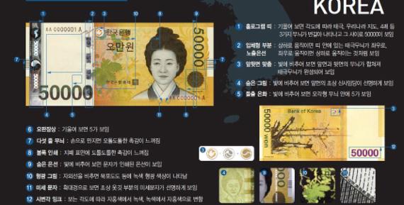 위조방지장치가 고도화 된 덕인데 2009년 처음 나온 5만원권의 위조방지장치는 18가지나 된다.