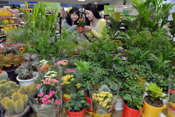 24일 서울 청파로 롯데마트 서울역점에서 홍보도우미들이 원예용품을 선보이고 있다.