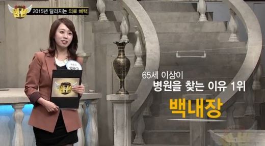 ‘노년층 입원 질환 1위’ 백내장이 노년층의 입원 질환 1위로 꼽혔다. 2014년 건강보험심사평가원 자료에 따르면, 65세 이상의 노인 입원 질환 1위(17만 9123명)가 백내장인 것으로 나타났다. 노년층의 입원 질환 1위 백내장은 매년 진료받는 환자가 늘어나고 있는 질병이다. 국민건강보험공단에 따르면, 2008년 202만865명이었던 환자 수가 2011년 240만 2340명으로 4년간 18.88% 증가했다. 백내장은 눈 속의 수정체(눈에 들어오는 빛을 조절해주는 볼록렌즈 모양의 조직)가 혼탁해지는 것을 말한다.