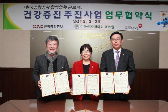 이화의료원은 최근 한국공항공사와 국민건강보험공단 서울지역본부와 '협력업체 근로자 건강증진 추진 사업 업무 협약 체결식'을 진행했다고 26일 밝혔다.