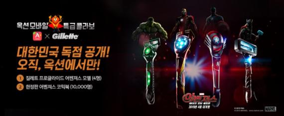 오픈마켓 옥션은 '4월 모바일 대축제' 행사 질레트 플렉스볼 면도기를 구매하는 고객 1만명에 한정판 어벤저스 코믹북을, 4명에는 어벤져스 면도기 피규어를 증정한다고 2일 밝혔다.