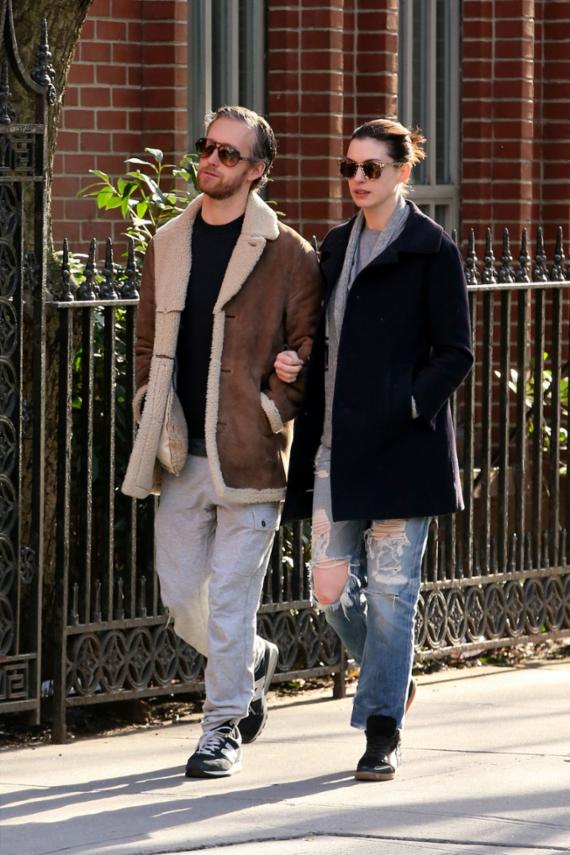 할리우드 톱스타 앤 해서웨이(32)가 6일(현지시간) 미국 뉴욕 소호 거리에서 남편인 애덤 셜먼과 다정한 데이트를 했다.