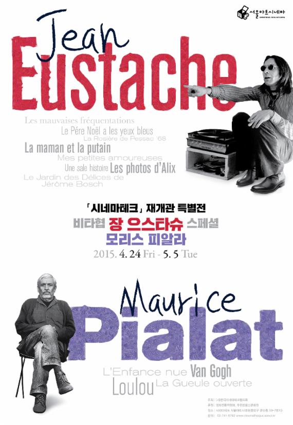 시네마테크 서울아트시네마는 오는 24일부터 5월 5일까지 새로운 보금자리에서 재개관 특별전으로 누벨바그 이후 프랑스 영화를 대표한 비타협 작가 장 으스타슈와 모리스 피알라의 특별전을 개최한다고 10일 밝혔다. 서울아트시네마는 낙원동에서 서울극장 11관으로 이전했다.