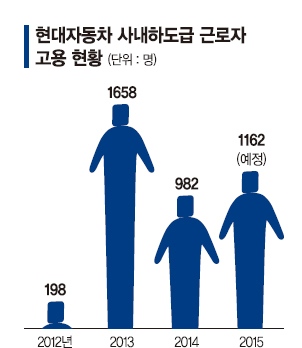 현대차 3년간 하청직원 중 20대 정규직 채용비중 1%