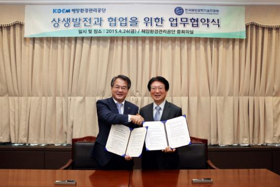 해양환경관리공단(KOEM)은 한국해양과학기술진흥원(KIMST)과 24일 서울 삼성로 KOEM에서 해양환경 분야 연구개발(R&D) 기술의 실용화 및 상업화를 위한 업무협약을 체결했다고 이날 밝혔다.