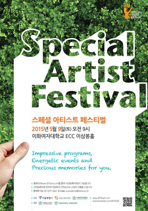 또한 이벤트 경품 및 참가자 증정 선물은 강남장애인복지관, 아이소이, 에이블아트센터, 오티스타, 한스킨 등의 협찬 및 후원으로 더욱 풍성해질 예정이다. 참가 신청 기간은 4월 20일부터 5월 6일까지로 참가 신청 및 자세한 문의 사항은 홈페이지( www.2015saf.co.kr)와 행사사무국(02-3277-4061, ecacademy@ewha.ac.kr)를 통해 확인할 수 있다. 참가비는 모두 무료다.