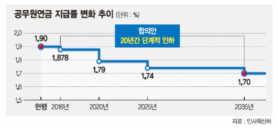 주무부처인 인사혁신처 관계자도 "근본적으로 총 재정지출을 줄이기 위해선 기여율 조정보다는 지급률을 낮추는 게 바람직하다"는 의사를 밝혔다.