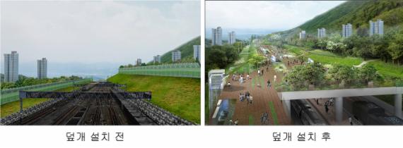 【 인천=한갑수 기자】 수인선 인천 송도역 철도 주변에 철도덮개구조물이 설치돼 휴식공간으로 조성된다.
