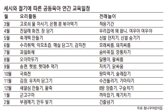 다만 아이들은 즐겁다. 자연에서 마음껏 뛰어놀고 선생님들이 관심을 가지고 지켜봐줘서다. 특히 교사 1인당 낮은 학생수는 아이들을 더 가까이 지켜보고 기다려줄 수 있다. 일부러 가르치지 않고 관심을 갖는 부분을 자연스럽게 알게 하는 것도 장점이다. 아이들이 편하고 행복한 만큼 부모들은 많은 관심과 투자를 해야 한다. 기본적으로 부모와 교사가 같이 만드는 시스템이다. 이 때문에 모든 부모들은 교육, 생활문화, 회계 등 각각의 소위에 참여해야 하고 한 달에 한 번 모임을 가져 어린이집 운영에 대한 토론이 이뤄진다. 1년에 4차례의 조합원 교육도 받는다.