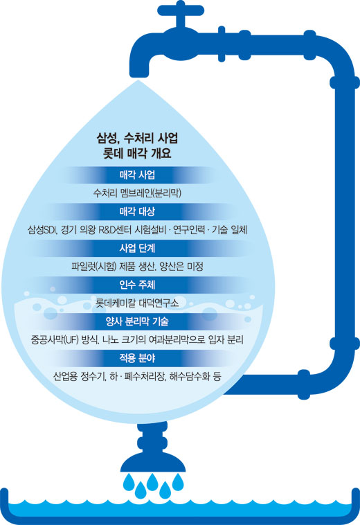 삼성이 5년간 육성했던 수처리 사업을 롯데에 전격 매각하면서 관련 업계의 비상한 관심을 끌고 있다.