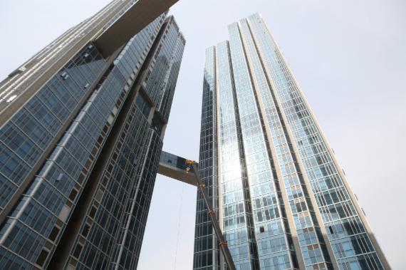 외벽은 유리소재로 마감하고 LED(발광 다이오드)조명을 사용해 수직적 상승감을 강조한 독특한 입면 설계가 특징이다. 최고층 빌딩인 부르즈칼리파처럼 알루미늄 프레임에 강화유리를 설치하는 커튼월(Curtain Wall)공법이 사용됐다.