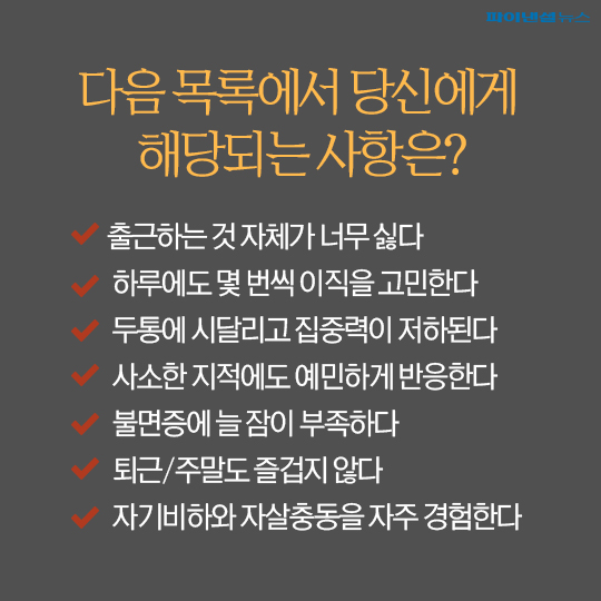 [관련기사] ☞ "출근하기 싫어.." 직장인 84% '오피스 우울증' 앓는다