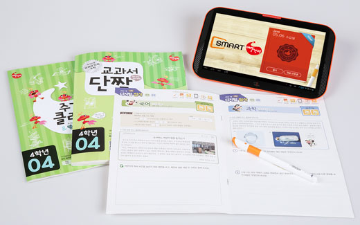 교원은 이달초 지난해 출시한 올앤지를 업그레이드 해 '스마트 빨간펜'을 내놨다. 기존 빨간펜 교재와 함께 동영상 강의, 멀티미디어 영상, 오디오 자료 등 1만5000개 이상의 디지털 콘텐츠를 제공한다. 특히 1020여종의 디지털 독서 콘텐츠까지 무제한으로 이용할 수 있어 학습과 독서가 합쳐진 일종의 토탈 패키지 상품이다.