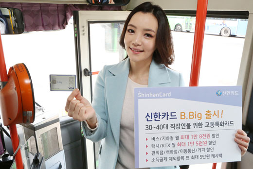 실용적 소비성향을 가진 30~40대 남녀 직장인을 겨냥해 대중교통에서 최고 수준의 할인 혜택을 제공하는 게 특징이다. 우선 'B.Big'은 버스나 지하철에서 이용한 후불교통 금액에 대해 할인 서비스를 제공한다.