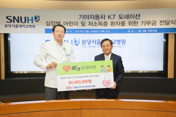 분당서울대병원은 기아자동차가 심장병 어린이 및 저소득층 환자를 위해 기부금 6000만원을 기증했다고 25일 밝혔다.