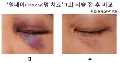 '원데이 멍 치료'는 적혈구에 작용하는 멍 레이저와 세포 활성을 돕는 젠틀웨이브 레이저, 약물치료를 병용해 멍 회복 기간을 대폭 줄인 것이다.