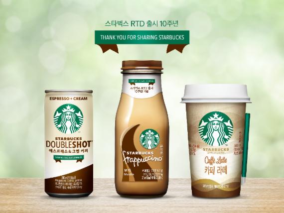 스타벅스 레디-투-드링크(RTD)는 지난 2005년 동서식품과의 라이선스 계약 체결을 통해 국내 시장에 진출, 커피·모카·카라멜 3종의 스타벅스 프라푸치노ⓡ 병커피로 국내 소비자들과 처음 만났다. 이후 2006년 스타벅스 더블샷ⓡ 캔커피, 2007년 스타벅스 디스커버리즈ⓡ 컵커피를 지속적으로 출시하며 지난 10년간 소비자들이 스타벅스 매장과 동일한 프리미엄 커피를 언제 어디서나 간편하게 즐길 수 있도록 제품군을 강화했다.