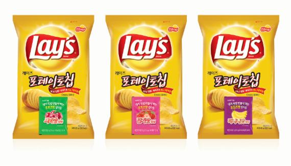 롯데제과는 생감자의 맛을 그대로 살린 포테이토칩 '레이즈(Lay's)'에 과일맛 양념 가루를 담은 작은 봉지를 부착해 레이즈의 맛을 다양화한다.