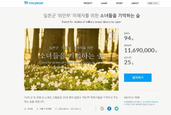 광복 70주년을 맞아 일본군 '위안부' 피해자를 위로하고 추모하기 위한 '소녀들을 기억하는 숲'이 국민 참여 크라우드펀딩으로 만들어진다.