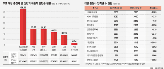 투자자를 직접 상대하는 리테일 영업이 활발해지면서 매출액도 크게 늘었다. 이들 증권사의 매출액은 28조1086억원을 기록했다. 지난해 상반기에 비해 28.19% 증가한 것이다.