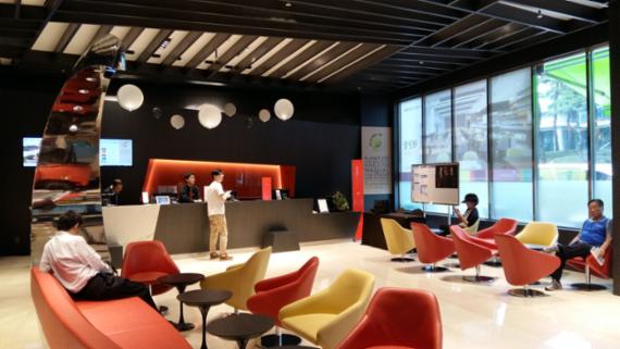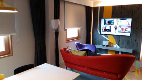 사진 1. 이비스 스타일 호텔 특유의 모던하면서 과감한 패턴을 강조한 로비. 조형미가 더해진 가구와 조명을 배치했다.