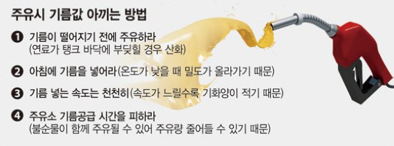 '바닥에 닿기전에 주유하라' '아침에 기름을 넣어라' '기름 넣는 속도는 천천히'.