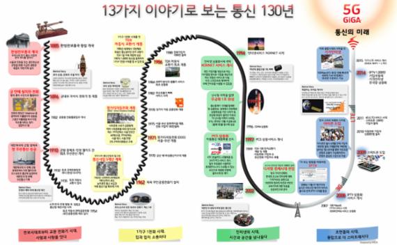 K T는 21일 서울 광화문 올레스퀘어에서 '대한민국 통신 130년 기념식'을 열었다. 한성전보총국 창설 130년을 맞아 그동안의 통신산업의 성장을 되돌아보고 향후 새로운 먹거리가 될 통신의 미래를 먼저 만나보는 행사다.