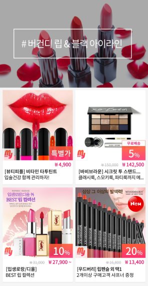 마이사이드 기획팀 양다미 큐레이터는 "2015년도 가을, 겨울 트렌드 컬러인 버건디 메이크업을 완성할 수 있는 다양한 제품들로 엄선했다"며 "메이크업에 자신 없는 분들도 이번 기획전을 잘 활용하면 트렌디한 가을여자로 거듭날 수 있을 것" 이라고 전했다.