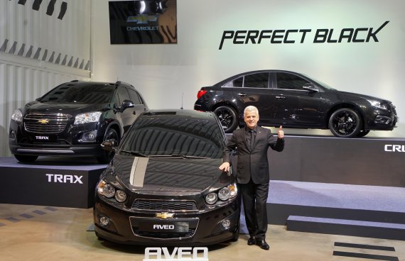 이날 열린 미디어 신차발표회에서는 쉐보레 아베오, 크루즈, 트랙스, 올란도 4차종 블랙 에디션이 소개됐다.사진=서동일 기자