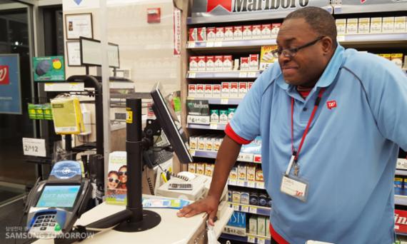 다음 행선지인 편의점에서도 직원은 "우리 가게에선 그렇게 '고급진' 기술 안 통합니다"라고 손사래를 쳤지만, 블로거는 결제에 성공했다. 점원은 몇초간 어리둥절한 표정을 짓더니 이내 신기한 듯 웃었다고 블로거는 묘사했다. 이어 직원은 "그게 삼성 페이란 거냐"고 물으며 별도 기기 없이 구형 카드결제기 만으로도 결제가 가능하단 점에 깊은 인상을 받은 것 같다고 전했다.