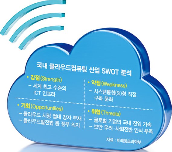 정부가 클라우드컴퓨팅(클라우드) 확산에 본격 나선다. 당초 클라우드 도입이 어려웠던 금융.의료.교육 분야 규제 완화를 추진해 현재 3% 수준인 국내 민간기업의 클라우드 이용률을 2018년까지 30% 이상으로 올리겠다는 목표다. 또한 정부통합전산센터를 정부의 자체 클라우드 인프라인 'G-클라우드'로 전환하는 것은 물론 공공기관의 민간 클라우드 사용시, 대기업 참여제한 원칙을 탄력적으로 완화해 향후 3년 간 4조6000억원대 시장으로 적극 육성할 방침이다.